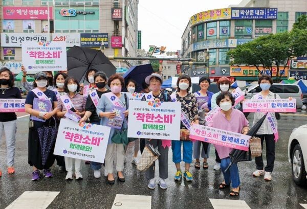 [무한뉴스] 한국생활개선 계룡시연합회는 코로나19로 인해 침체된 지역경제 활성화를 위해 엄사네거리 일원에서 “착한소비 캠페인 실천운동”을 전개했다.
