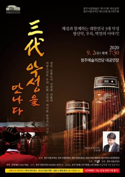 [무한뉴스] 청주시립국악단이 오는 9월 2일 저녁 7시 30분 청주예술의전당 대공연장에서‘3대 악성을 만나다’ 공연을 펼친다.
