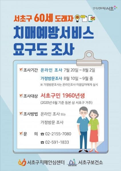 ‘치매예방 서비스 요구’도 조사에 대해 궁금한 점은 서초구 치매안심센터로 문의하면 된다.