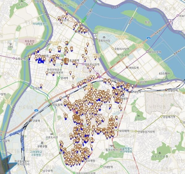 ‘사유지 도로 서비스’는 구 전체의 사유지 도로 현황을 지도로 시각화해, 지도태깅을 통해 지번, 지목, 면적 등의 도로정보를 확인할 수 있는 원클릭 도로정보 시스템이다.