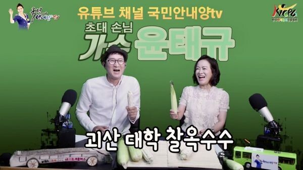 국민안내양TV-괴산군편에서는 김정연 씨와 동료 가수 윤태규 씨가 손을 잡고 괴산군을 방문해 지역 대표 특산물인 괴산 대학찰옥수수와 감물 감자를 맛보며 두 콤비의 입담으로 맛깔난 평가를 이어간다.