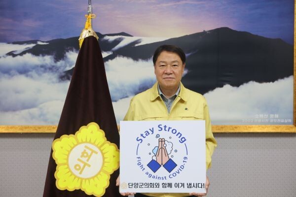 [무한뉴스] 단양군의회 장영갑 의장과 조성룡 의원은 지난 7월 31일 코로나19 극복과 조기 종식을 응원하는 ‘스테이 스트롱’ 캠페인에 동참했다.