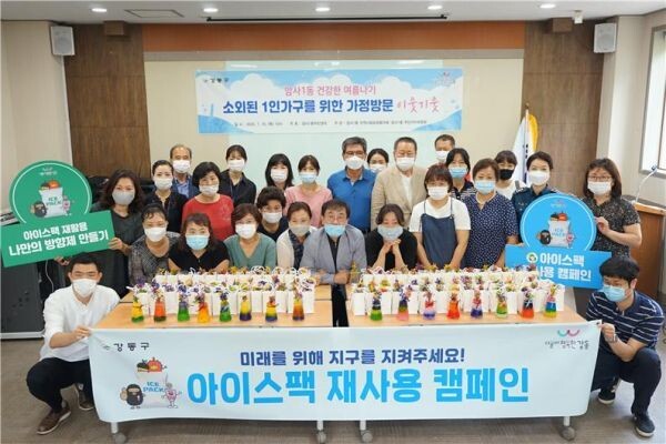 [무한뉴스] 여름철을 맞아 강동구 주민들이 아이스팩을 재활용해 만든 모기퇴치 방향제를 소외 이웃들에게 전달하며 이웃 사랑, 환경 사랑을 실천했다.