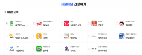 신청을 원하는 사업자는 ‘제로배달 유니온 홈페이지’에 접속해 원하는 배달앱사를 선택한 후 사업자등록번호, 주소, 연락처 등 가맹점 정보를 입력하면 된다.