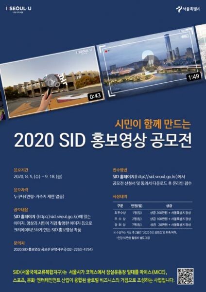 [무한뉴스] 서울시는 미래형 성장 동력의 거점이 될 서울국제교류복합지구 조성 사업을 알리기 위해 시민이 함께 만드는 ‘2020 SID 홍보영상 공모전’을 9월 18일까지 진행한다고 밝혔다.