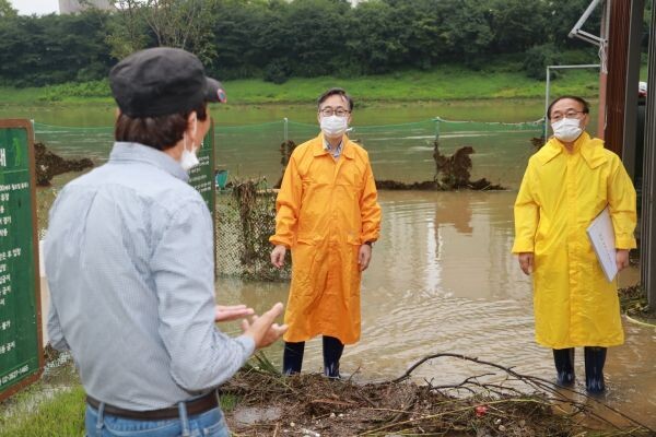 유성훈 구청장은 이날 오전 안양천 둔치 진입로 차단시설과 독산1수문을 확인하고 최근 준공된 안양천 파크골프장, 풋살장, 물놀이장 등 하천 체육시설 현장을 방문해 피해상황을 점검했다.