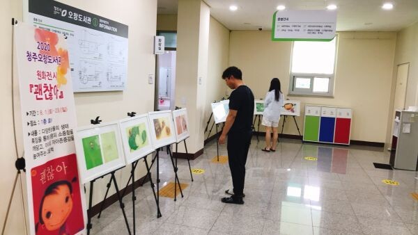 [무한뉴스] 청주오창도서관이 지역 주민들에게 다양한 독서문화 체험의 기회를 제공하고 도서관 이용 활성화를 위해 오는 8월 23일까지 도서관 1층 로비에서 그림책 ‘괜찮아’원화를 전시한다.