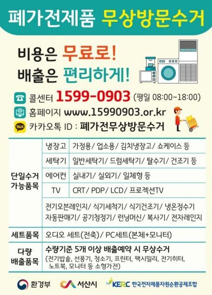 시 관계자는 “폐가전제품 무상방문수거 서비스를 적극 홍보해 폐가전제품의 불법적인 처리를 사전에 차단하고 배출 수수료 면제로 시민의 부담을 덜어드릴 계획”이라고 전했다.