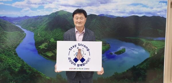 [무한뉴스] 신동운 괴산군의회 의장이 지난 6일 신종 코로나바이러스 감염증 극복과 조기 종식을 응원하는 ‘스테이 스트롱’ 릴레이 공익 캠페인에 동참해 코로나19로 어려움을 겪고 있는 국민들에게 희망의 메시지를 전했다.