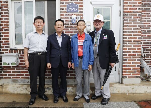 이날 이차영 괴산군수와 신동운 괴산군의회 의장은 괴산군에 거주하는 참전유공자 4명의 자택을 찾아 ‘감사메달 전수와 국가유공자 명패 달아드리기’ 행사를 진행했다.