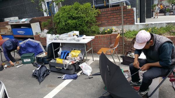 중부지역 장마가 역대 최장기간 기록을 경신하면서 우산수리를 찾는 주민들이 부쩍 늘어났다.