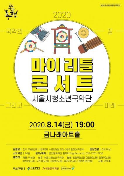 [무한뉴스] 금천문화재단은 오는 8월 14일 오후 7시 금나래아트홀에서 서울시청소년국악단의 국악 공연 ‘마이리틀 콘서트’를 개최한다고 밝혔다.