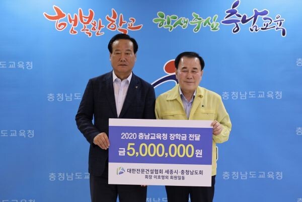 대한전문건설협회 세종시·충청남도회는 경제적 사정 등으로 재능을 키워나가는데 어려움을 겪는 학생들을 위해 충남도교육청 교육사랑장학재단에 장학금을 기탁했다.