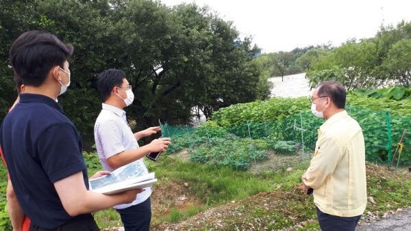 [무한뉴스] 청주시 푸른도시사업본부장이 12일 대청댐 방류에 따른 금강변 생태누리길 침수피해 현장인 서원구 현도면 양지리 일대를 방문해 피해상황을 살폈다.