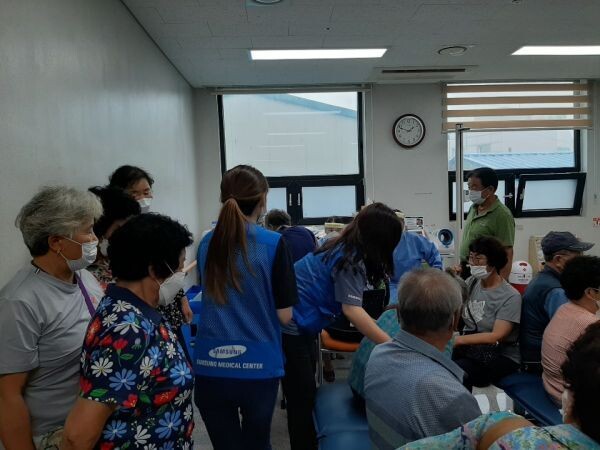 [무한뉴스]삼성서울병원 직원들이 최근 폭우로 인해 큰 피해를 입은 아산시 송악면 주민들을 위해 지난 12일 송악보건지소에서 무료진료 봉사활동을 펼쳤다.