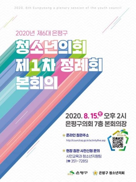 [무한뉴스] 은평구는 오는 8월 15일 은평구의회 본회의장에서 제6대 은평구 청소년의회 제1차 정례회 본회의를 개최한다고 밝혔다.