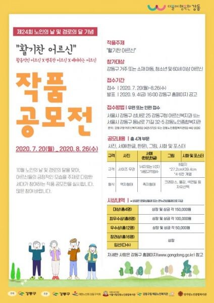 작품 접수는 8월 26일까지이며 강동구에 거주하는 아동, 청소년, 60세 이상 어르신이면 누구든지 참여 가능하다.