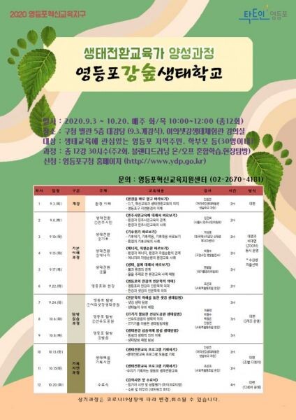 구는 이 같은 흐름을 뒷받침하고자 영등포혁신교육지구 주관으로 이번 ‘강숲생태학교’를 시작하고 지역사회 생태전환교육가를 양성하고자 나선 것이다.