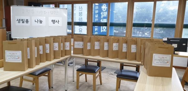 고척1동 자원봉사협력단은 22일 홀몸 어르신들에게 필요한 생필품 꾸러미를 만들어 20명에게 전달했다.