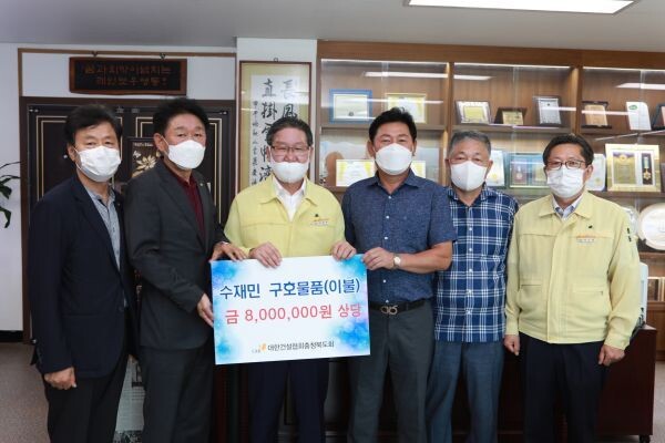 [무한뉴스] 대한건설협회충북도회가 14일 영동군청을 찾아 수해피해를 입은 주민들에 지원해달라며 800만원 상당의 이불 57채를 레인보우행복나눔에 기탁했다.