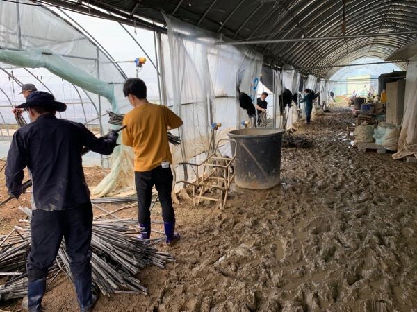 20여명의 직원들은 집중호우로 침수된 비닐하우스 비닐과 토사를 제거했으며 무너진 비닐하우스의 파이프를 철거하는 작업에도 힘을 보탰다.