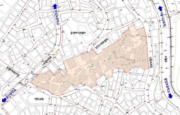 공사구간은 길이 430m, 폭 2~6m, 면적 9365㎡로 두텁바위로40길 외 인접 골목길 일부가 포함된다.