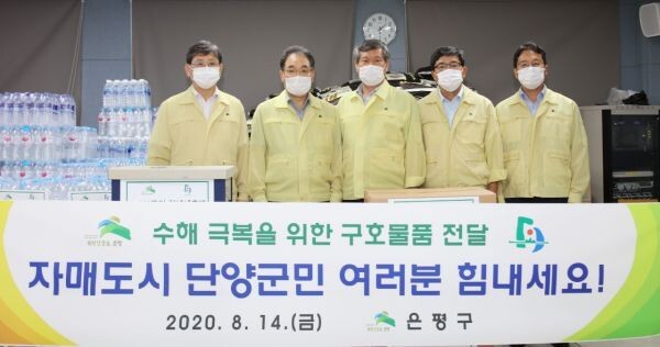 [무한뉴스]은평구는 지난 14일 집중호우로 인해 수해를 입은 자매도시인 충청북도 단양군을 방문해 응원 메시지와 함께 구호 물품을 전달했다.