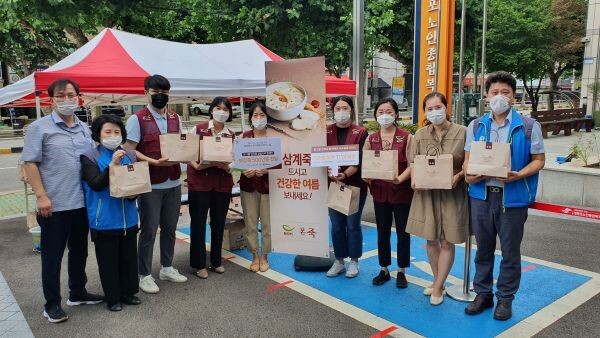 지원받은 보양죽은 오는 15일 말복을 맞아 결식 우려가 있는 어르신들의 건강한 여름나기를 위해 추진됐으며 삼계죽 250개와 보양삼계죽, 전복죽으로 구성된 보양죽 세트 250개, 총 500인분의 보양죽이 전달됐다.