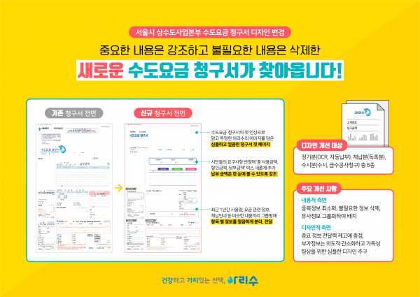 서울시 상수도사업본부는 2015년 수도요금 청구서 개편 이후 5년 만에 청구서 디자인을 개선했다고 13일 밝혔다.