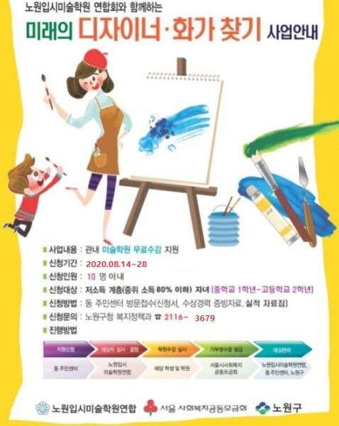 노원구는 2016년 6월 노원구 입시미술학원연합회와 협약을 맺고 어려운 가정의 청소년들에게 미술교육의 기회를 무료로 제공하고 있다.