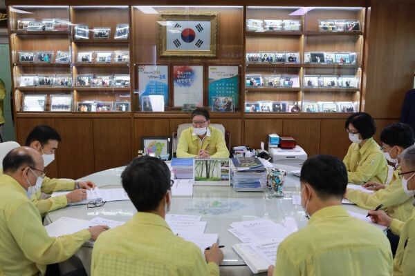 박세복 군수는 20일 코로나19 대응 간부회의에서 영동군 방역활동 전반을 재점검하며 지역사회 건강과 안전을 위해 흐트러짐 없이 꼼꼼한 방역활동을 지속 이어갈 것을 지시했다.