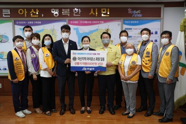 [무한뉴스] 아산지역 라이온스 회원 일동이 집중호우로 어려움을 겪고 있는 주민들을 위해 지난 20일 아산시에 선풍기 100대를 기부했다.