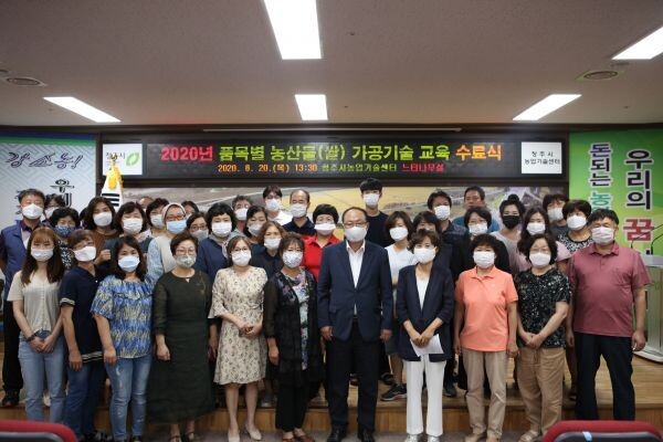 [무한뉴스] 청주시농업기술센터가 지난 20일 농업기술센터 농산물가공기술지원관에서 교육생 50여명이 참여한 가운데 품목별 농산물 가공기술교육 과정 수료식을 가졌다.