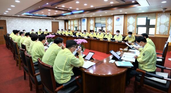 군은 24일 오전 군청 상황실에서 김돈곤 군수와 실·과장, 읍·면장, 주무팀장 등 60여명이 참석한 가운데 사회적 거리두기 격상에 따른 후속 조치와 방역강화 방안을 논의했다.