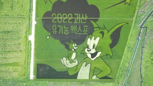 사리면에는 경자년을 맞아 유명 만화캐릭터 톰과 제리가 등장하는 2022 괴산세계유기농산업엑스포 홍보 그림을 그려 유기농업 발전과 군민 행복을 기원한다는 의미를 담았다.