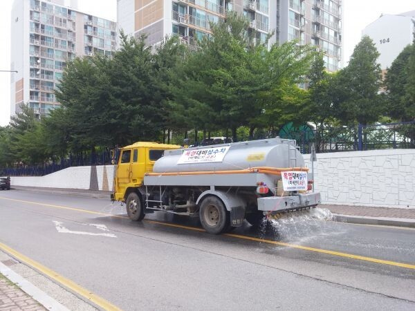 이와 함께 관차 2대를 포함한 4대의 차량을 이용해 진천군 전 지역을 대상으로 살수 작업을 펼치며 도로 시설물 변형을 방지하고 열섬현상도 완화하고 있다.
