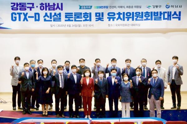 24일 오전 10시 국회의원회관 대회의실에서는 ‘강동구·하남시 GTX-D 신설 토론회 및 유치위원회 발대식’이 진행됐다.