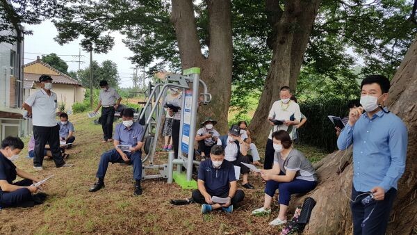 지난 22일 코로나19 예방 차원에서 규모를 축소해 군 관계자와 용역 사업체, 주민 등 30여명이 참석한 가운데 송림2리마을회관 느티나무 쉼터에서 진행됐다.