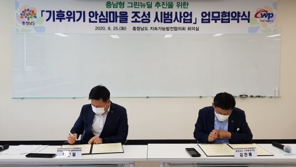 아울러 이날 도는 이번 사업의 원활한 추진을 위해 충청남도 지속가능발전협의회 회의실에서 한국서부발전과 ‘기후위기 안심마을 조성 시범사업’ 업무협약을 체결했다.