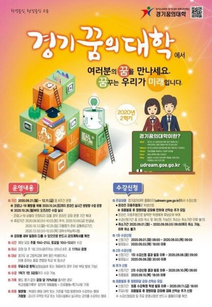[무한뉴스] 경기도교육청이 오는 9월 1일부터 10일까지 도내 고등학생과 학교 밖 청소년을 대상으로 ‘2020 경기꿈의대학 2학기 수강 신청’을 받는다.
