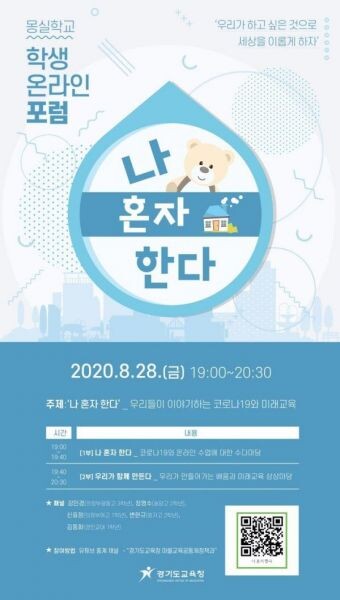 [무한뉴스]경기도교육청이 오는 28일 오후 7시부터 경기도교육청마을교육공동체정책과유튜브채널에서 코로나19로 인한 삶과 교육의 변화를 주제로 몽실학교 학생 온라인 포럼 ‘나 혼자 한다’를 진행한다.