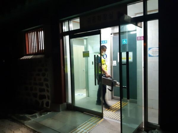 갈산면 자율방범대는 26일 공용화장실, 마을회관, 시장, 버스 승강장 등 유동인구가 많은 다중이용시설을 중심으로 대대적인 방역을 실시했다.