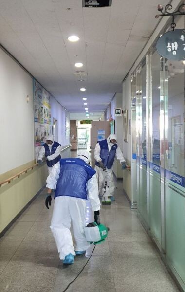 [무한뉴스] 아산자활센터 푸른청소사업단이 삼성디스플레이와 함께 지난 25일 정신재활시설 좋은이웃을 대상으로 코로나19 확산 방지를 위한 특별 소독방역을 실시했다.