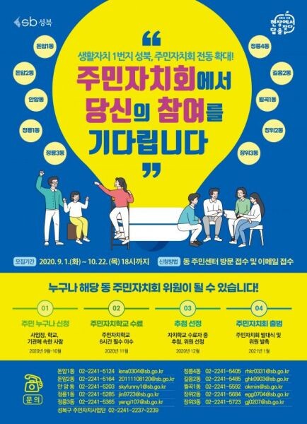 [무한뉴스] 성북구가 일부 동에서 운영되던 주민자치회를 2021년부터 20개 전 동으로 확대 운영함에 따라 오는 9월부터 위원을 모집한다.
