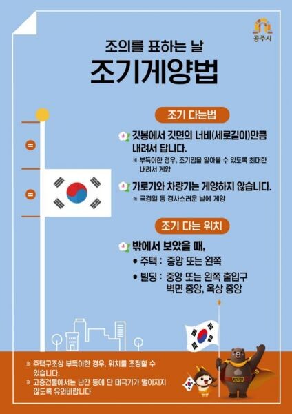 이번 조기 달기는 2019년 11월 제정한 ‘공주시 국기 게양일 지정 및 국기 선양에 관한 조례’에 따른 것이다.