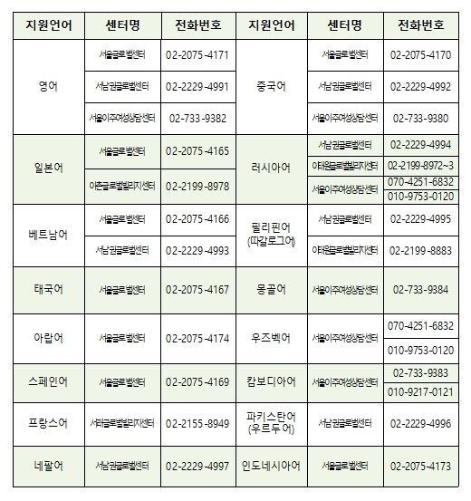 더불어 17개 다국어 상담 통합콜센터를 통해 신청 대상자가 자신의 모국어로 간편하게 문의와 상담을 받을 수 있도록 지원한다.