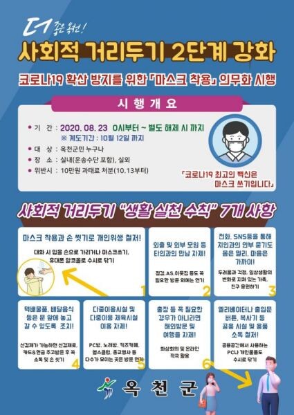 특히 이날 캠페인에서는 각 읍·면 주민들에게 마스크 착용 의무화 홍보전단지를 배부하며 오는 10월 13일부터는 마스크 미착용시 10만원의 과태료가 처분됨을 적극 안내했다.