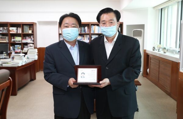 [무한뉴스]청주시가 28일 11시 시청 집무실에서 오는 9월 2일 임기가 만료되는 허원욱 청주시 공직자윤리위원장에 감사패를 수여했다.