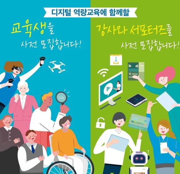 교육은 디지털 분야 전문가의 강의로 스마트기기, 비대면 화상솔루션과 SNS 사용능력을 향상시키는 디지털 기초 금융·공공서비스 등 일상에서 자주 사용하는 디지털 기술을 학습하는 디지털 생활 디지털기기와 프로그램을 이용해 일정 수준의 결과물을 만들 수 있는 디지털 중급으로 진행된다.