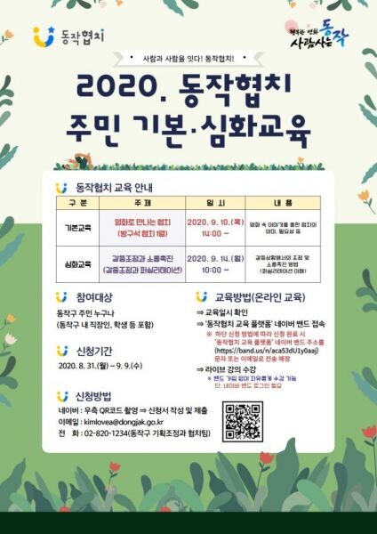 [무한뉴스] 동작구가 협치회의 위원 및 주민, 관심 있는 직원을 대상으로 ‘동작협치 주민 기본·심화 온라인 교육’을 실시한다고 1일 밝혔다.